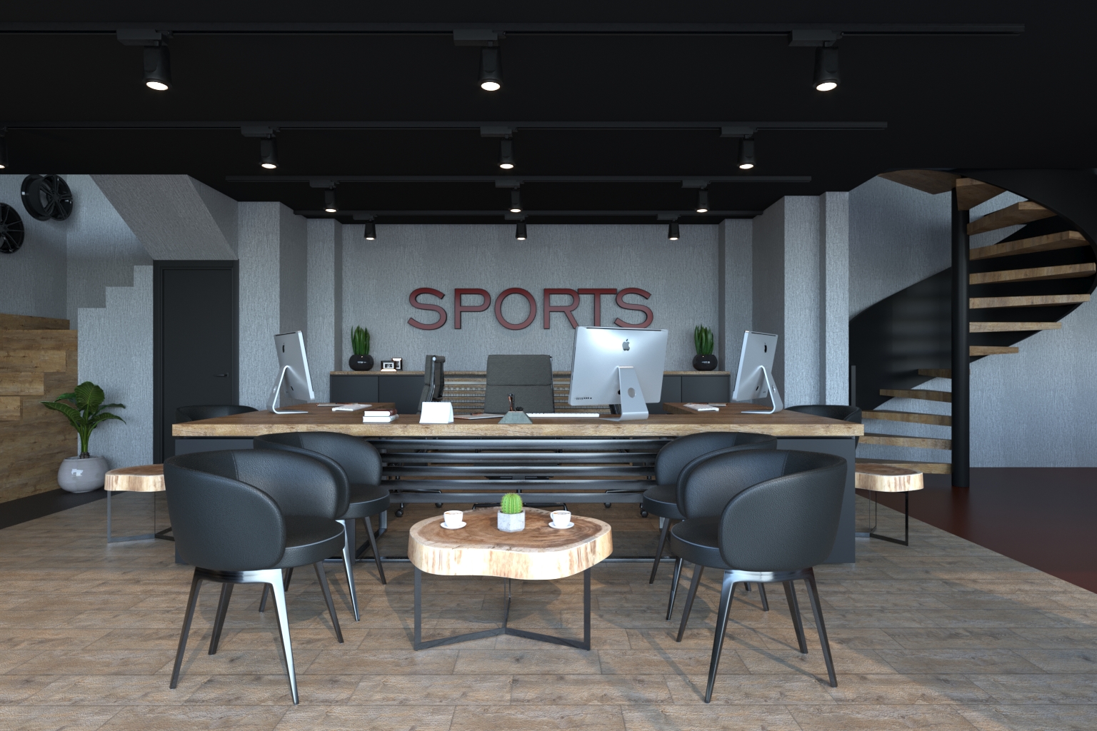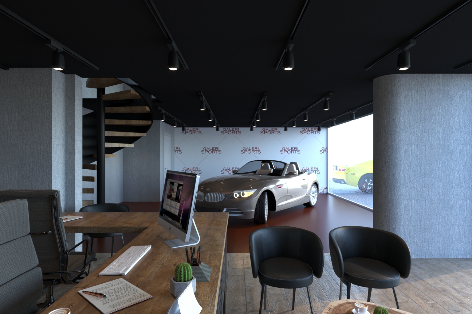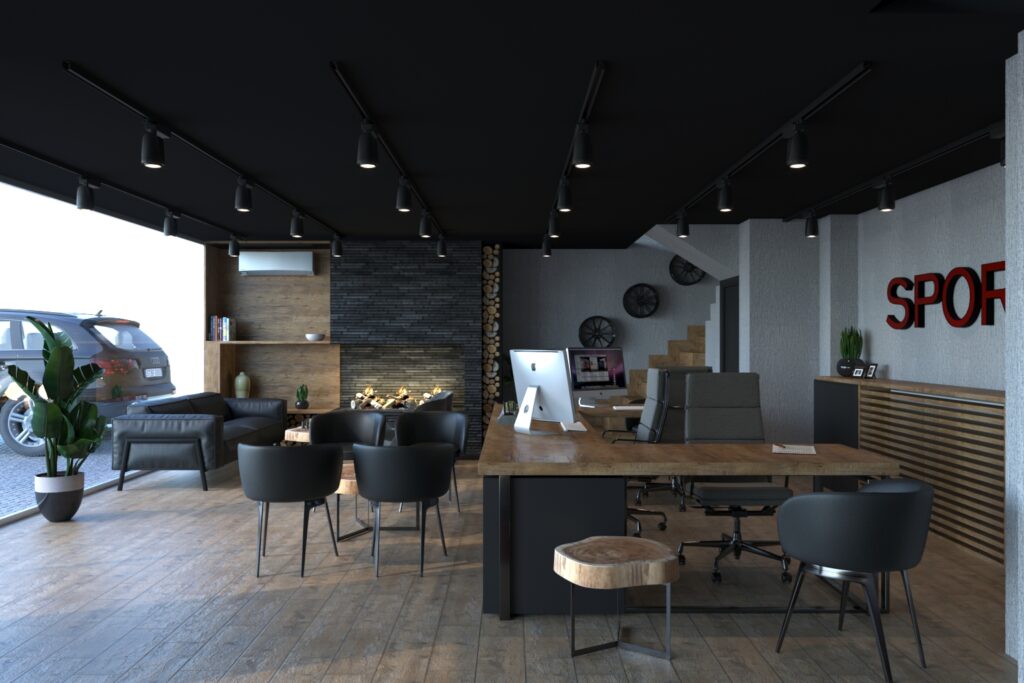 Galeri Sports için tasarlanan bu showroom ofis, markanın dinamizmini ve güven veren duruşunu yansıtan bir iç mekân dili sunuyor. Maskülen malzeme tercihleri, kontrast ışık kurgusu ve açık plan yerleşim ile güçlü bir atmosfer oluşturuldu.