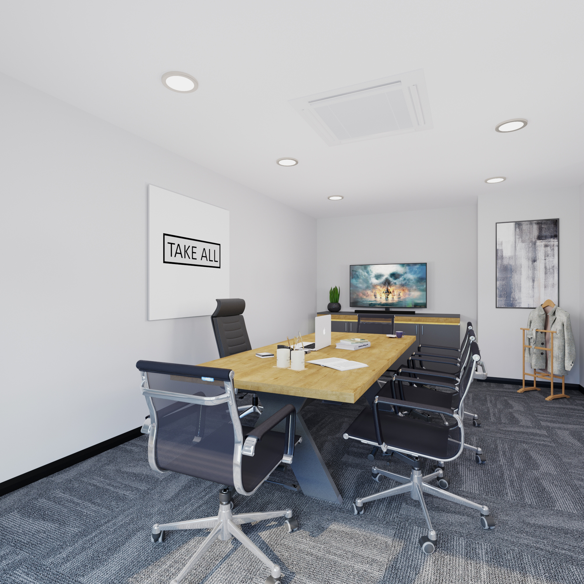 Açık ofis, toplantı odası ve yönetici odası gibi temel ihtiyaçlara çözüm sunan bu tasarımda yalınlık ve işlevsellik ön planda tutuldu. Doğal ışığı filtreleyen geniş cam cepheler, mekâna ferahlık katarken, açık renk zemin ve duvarlar sayesinde kullanıcı odaklı sade bir atmosfer sağlandı. Ahşap detaylar ve siyah çerçeve uygulamaları ile güçlü bir denge yakalanarak kurumsal ama sıcak bir ofis ortamı oluşturuldu.